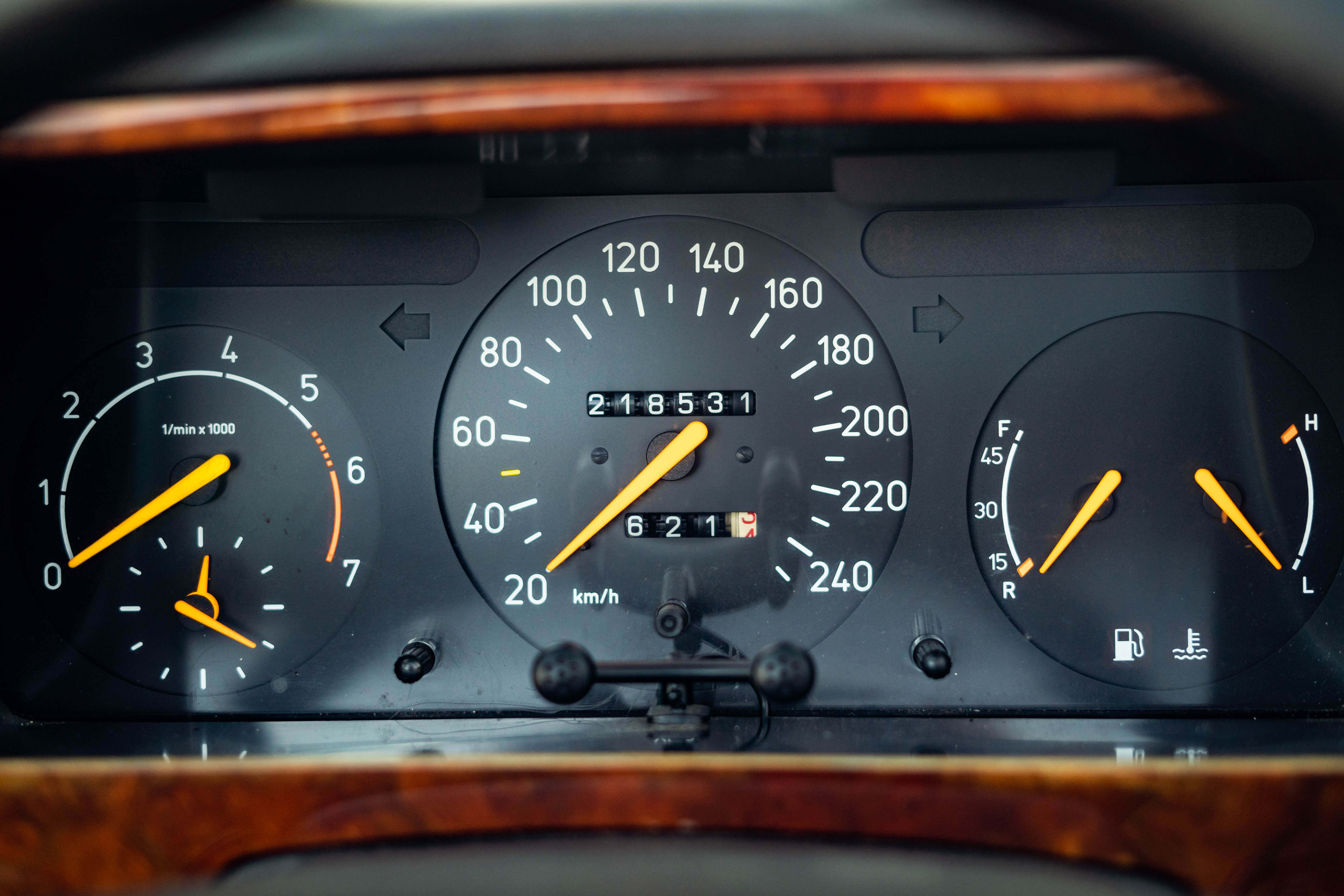 De Saab heeft net 218.531 kilometer aan ervaring. Kilometerregistratie sinds invoer (60.000 km) is aanwezig en logisch oplopend.