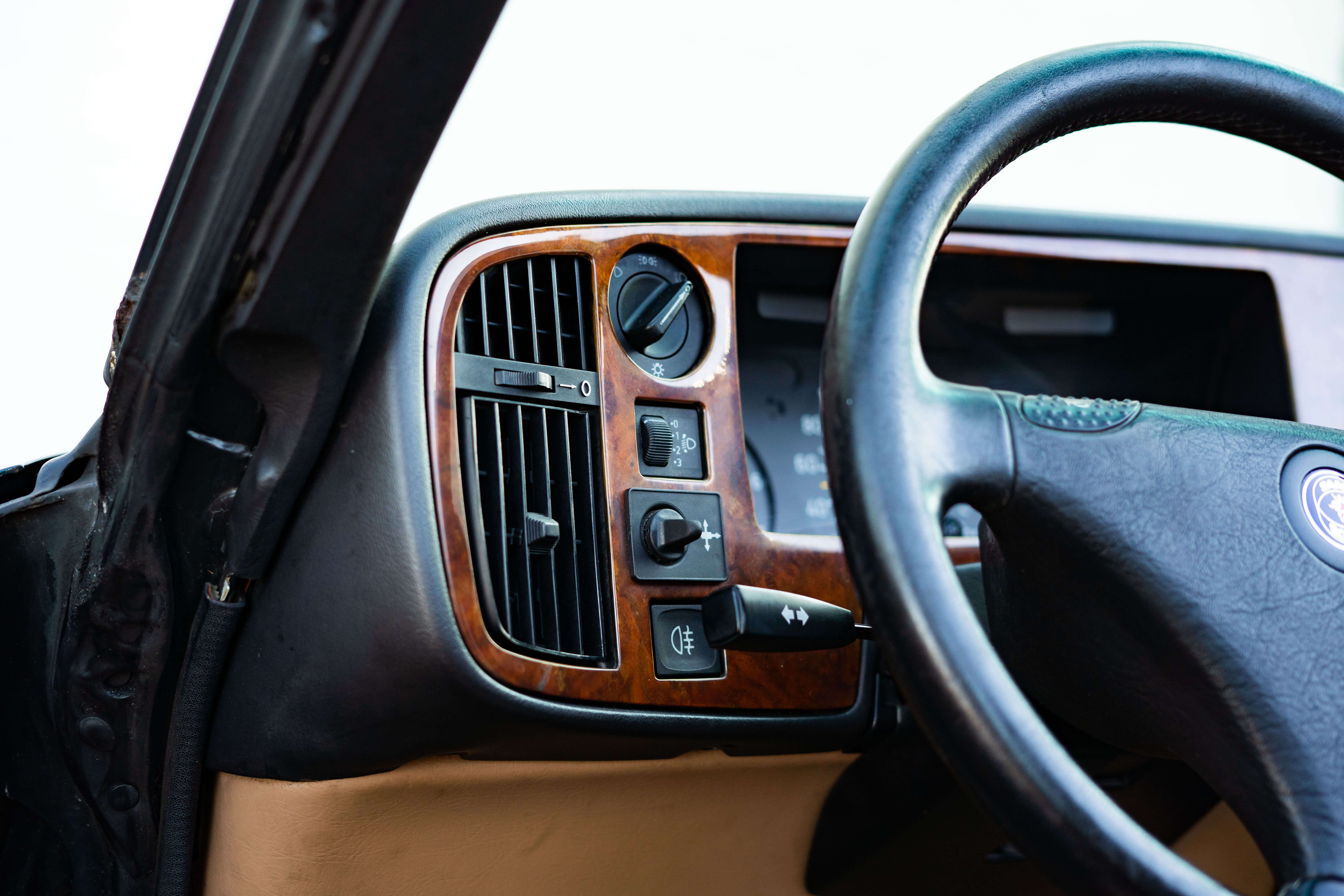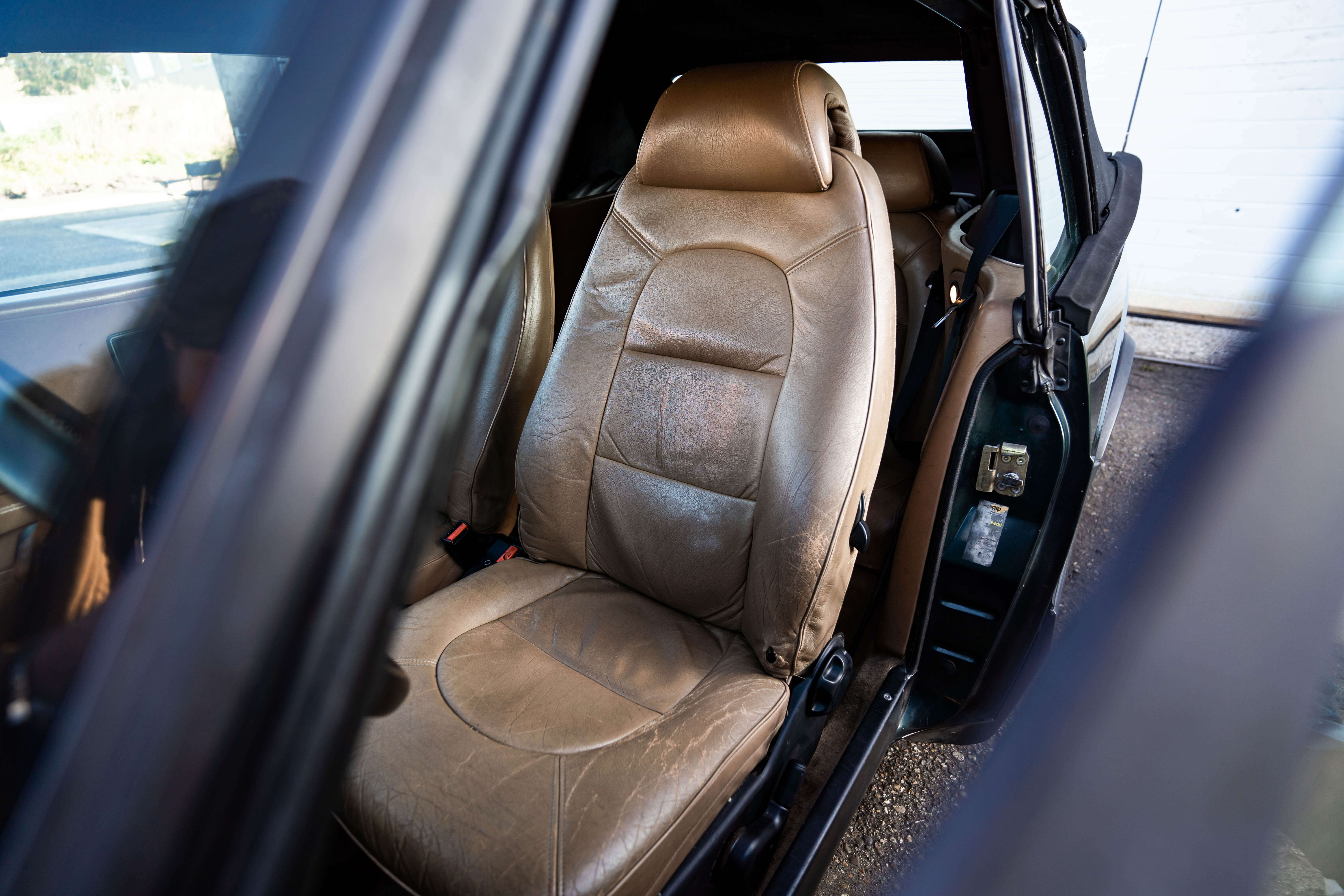De lak van de Saab is in geweldige staat, weinig lakbeschadigingen, krassen of deukjes. Scarabee groen is een geweldige kleur, combineer dit met het Arizona interieur en er ontstaat een ontzettend chique verschijning. Het interieur is nog in goede staat. Gebruikssporen zijn te vinden, echter zijn deze niet storend. De stoelen zitten zeer comfortabel, alle elektrische functions werken naar behoren. Ondanks dat het hier om een cabrio gaat, is deze destijds uitgevoerd met airco.