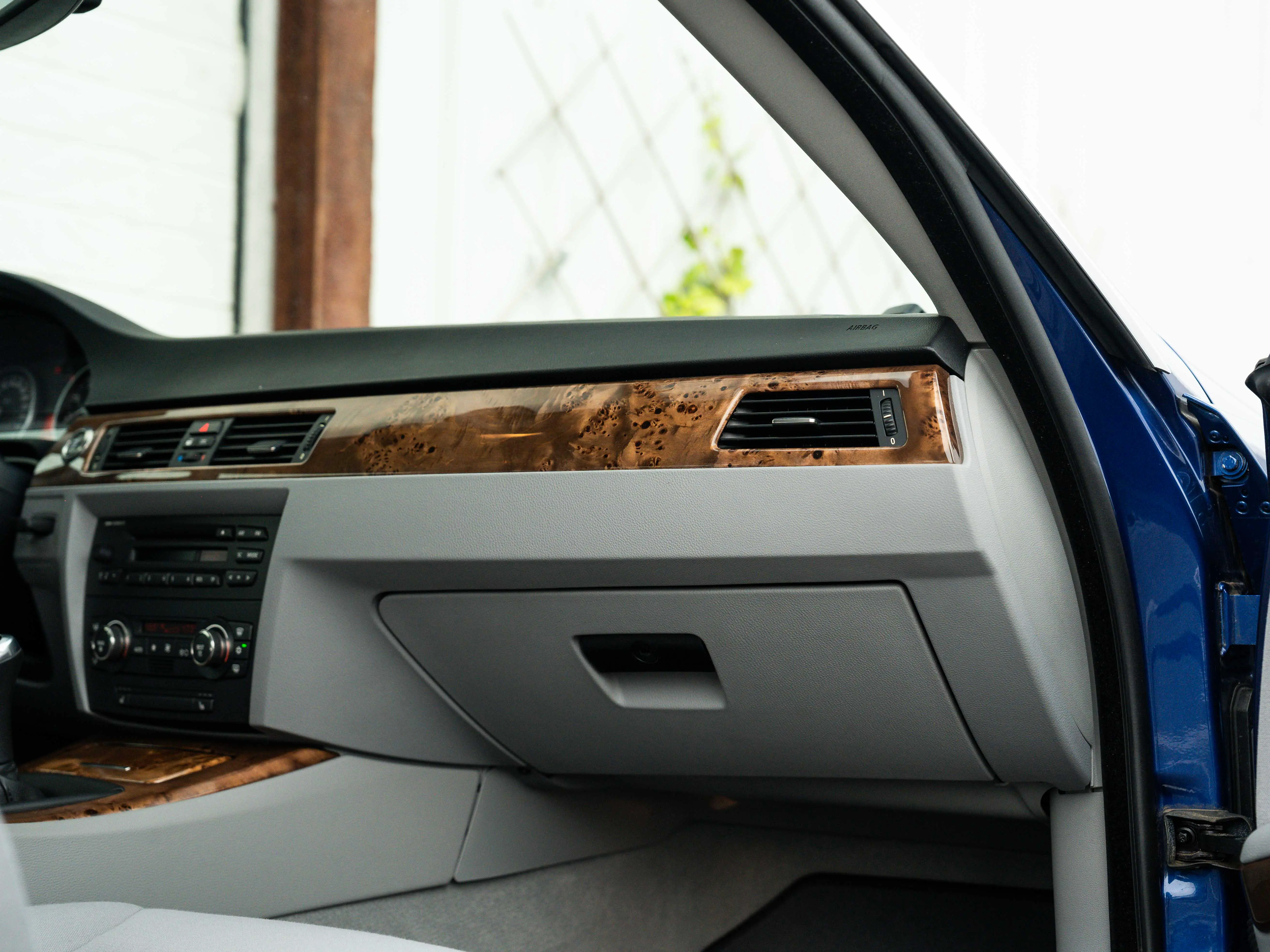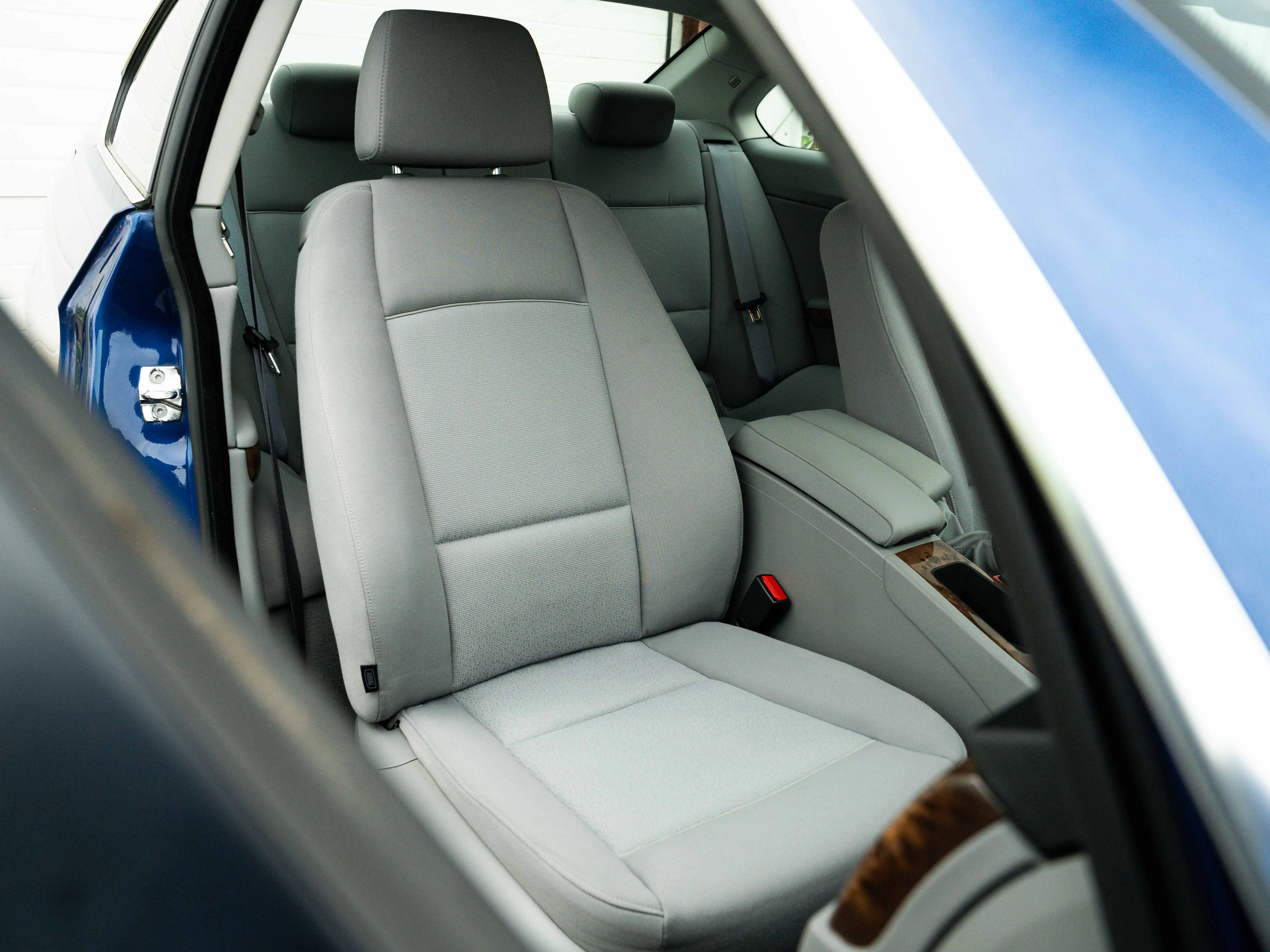 Aesthetically stimulating, that's how I would like to describe the E92. But then I have to admit that I only find that with a special paint colour. Don't get me wrong, the E90 coupé is an incredibly beautiful car, also in black or grey. (And certainly 100 times more beautiful than the sedan from the same series). But Montego Blau makes it just that little bit more special. The paint is still in very good condition and was recently polished by us. There is a small chip on the hood, you have to look carefully for that. The bumpers have also had little to endure, even without parking sensors.