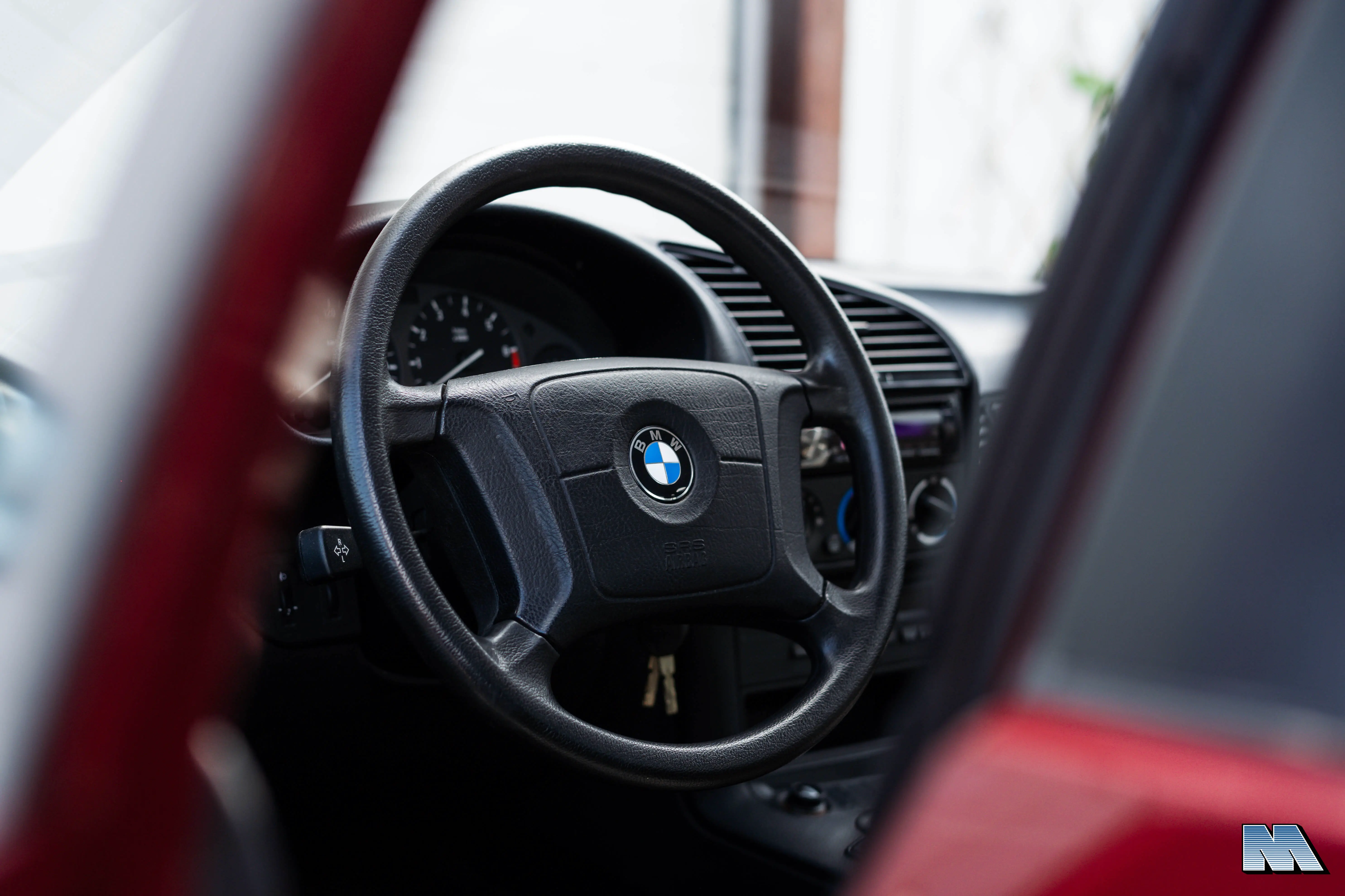 In het interieur vindt men elektrische ramen rondom en een handgeschakelde versnellingsbak. Een naar onze mening zeer gewenste optie, hierdoor voelt het rijden een stuk kwieker aan dan bij een automaat. Het interieur is nog in goede staat, geen instapschade, alle functies werken naar behoren, helaas heeft het tapijt aan de bestuurderszijde wel instapschade. De M43 motor start meteen en draait hierna zeer soepel.