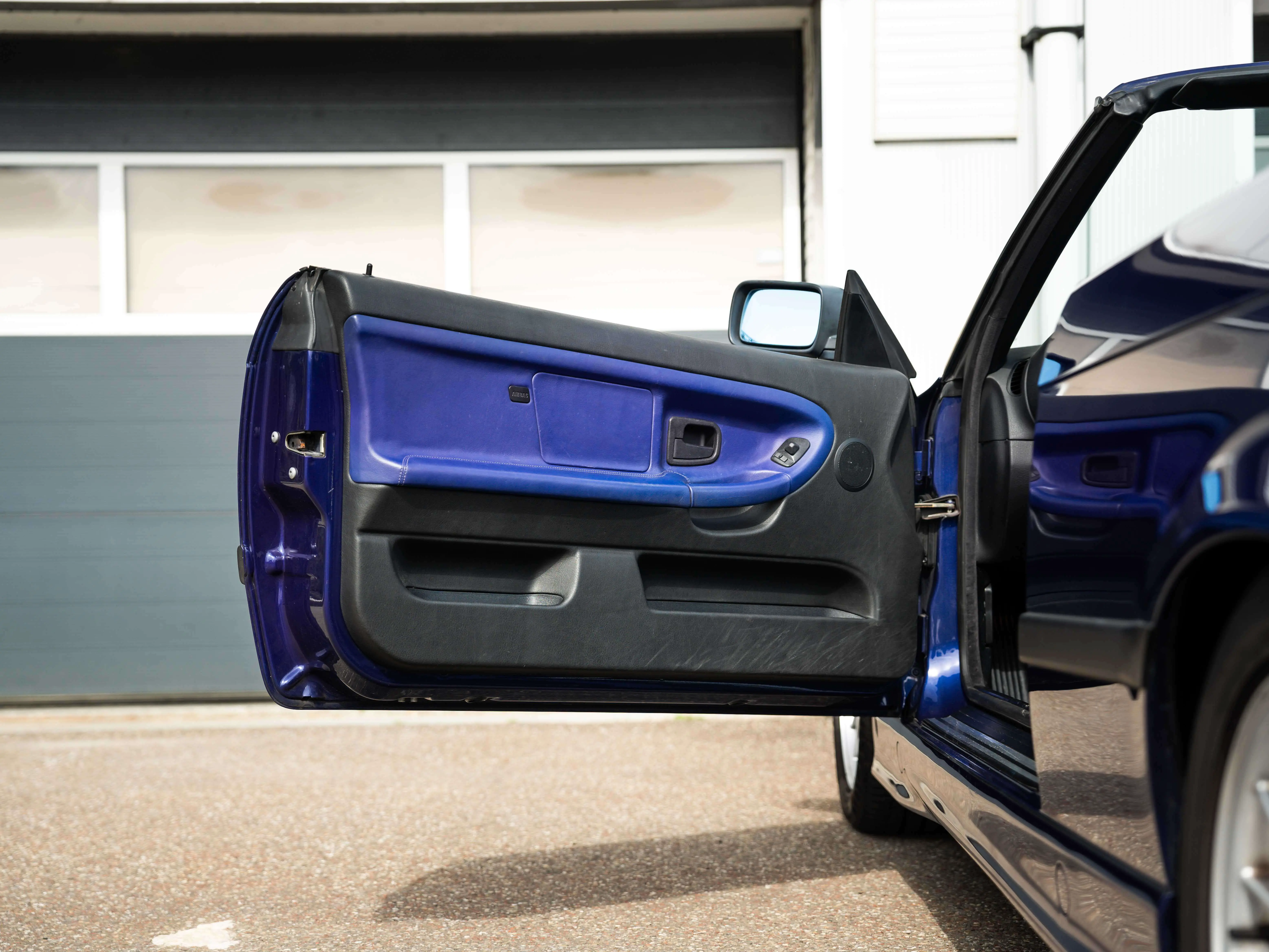 On the outside we find the Blue Velvet Metallic paintwork, in a neat condition. Of course, here and there some superficial scratches, but extremely representative for its age. Few to no dents. The hardtop is also in a neat condition, apart from some scuffs on the edges due to mounting. The headliner of the hardtop is unfortunately hanging. The soft top is in neat condition, no strange folds and of course waterproof. The rear plastic window is not completely neat anymore, but worth mentioning. To be honest, it looks best with the hardtop on, but of course you can decide that for yourself.