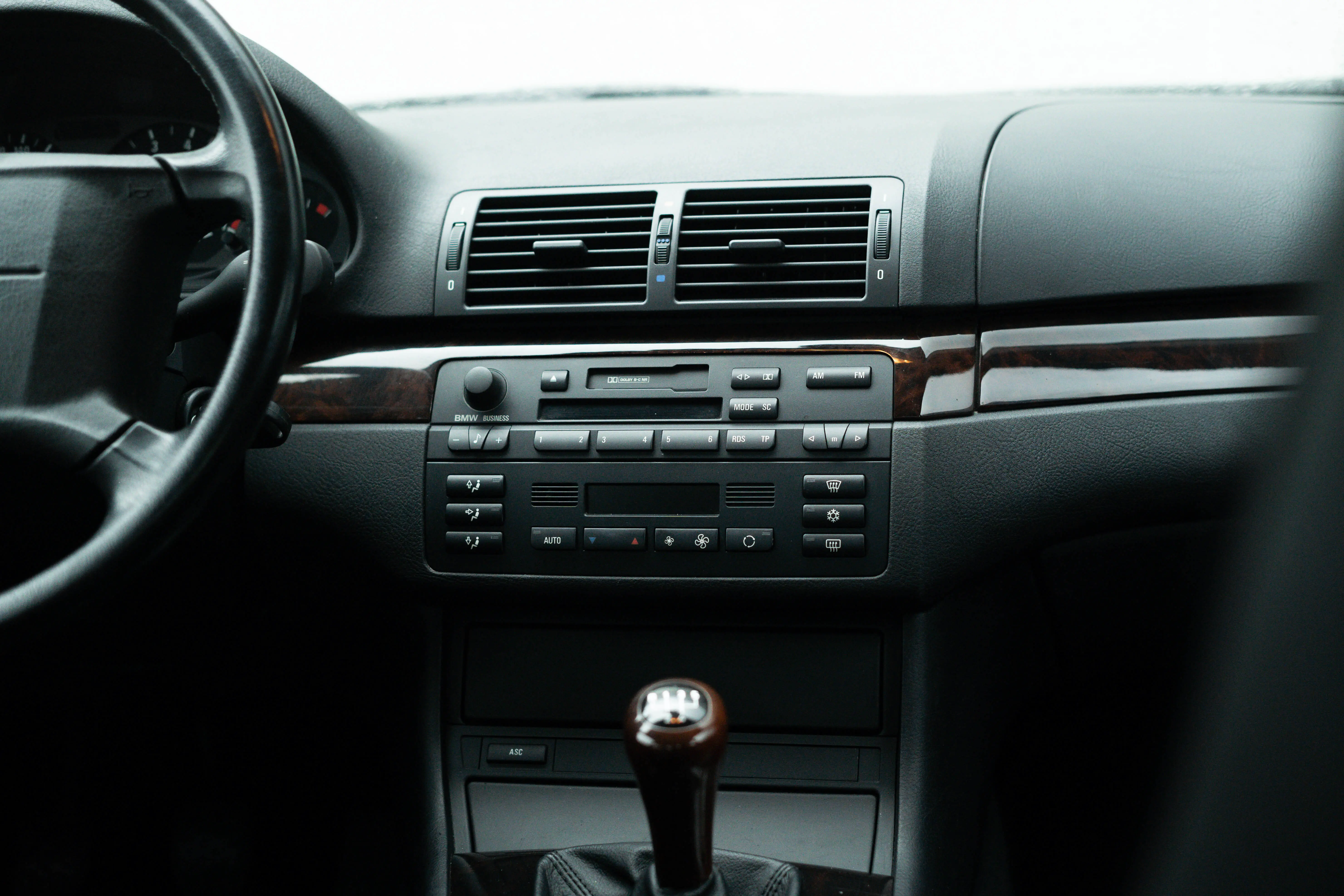 29.741 kilometers is het aantal dat aangegeven werd toen wij voor het eerst plaatsnamen in het nog maagdelijke interieur van de E46. Het leer lijkt ongebruikt, het soft-touch plastic heeft geen rare krassen of gebruikssporen, de stoelen zijn nog ferm en achterin heeft nog nooit iemand gezeten. De uitspraak ‘Is van een oud vrouwtje geweest’ wordt vaak gebruikt, maar hier is het dan ook echt van toepassing.