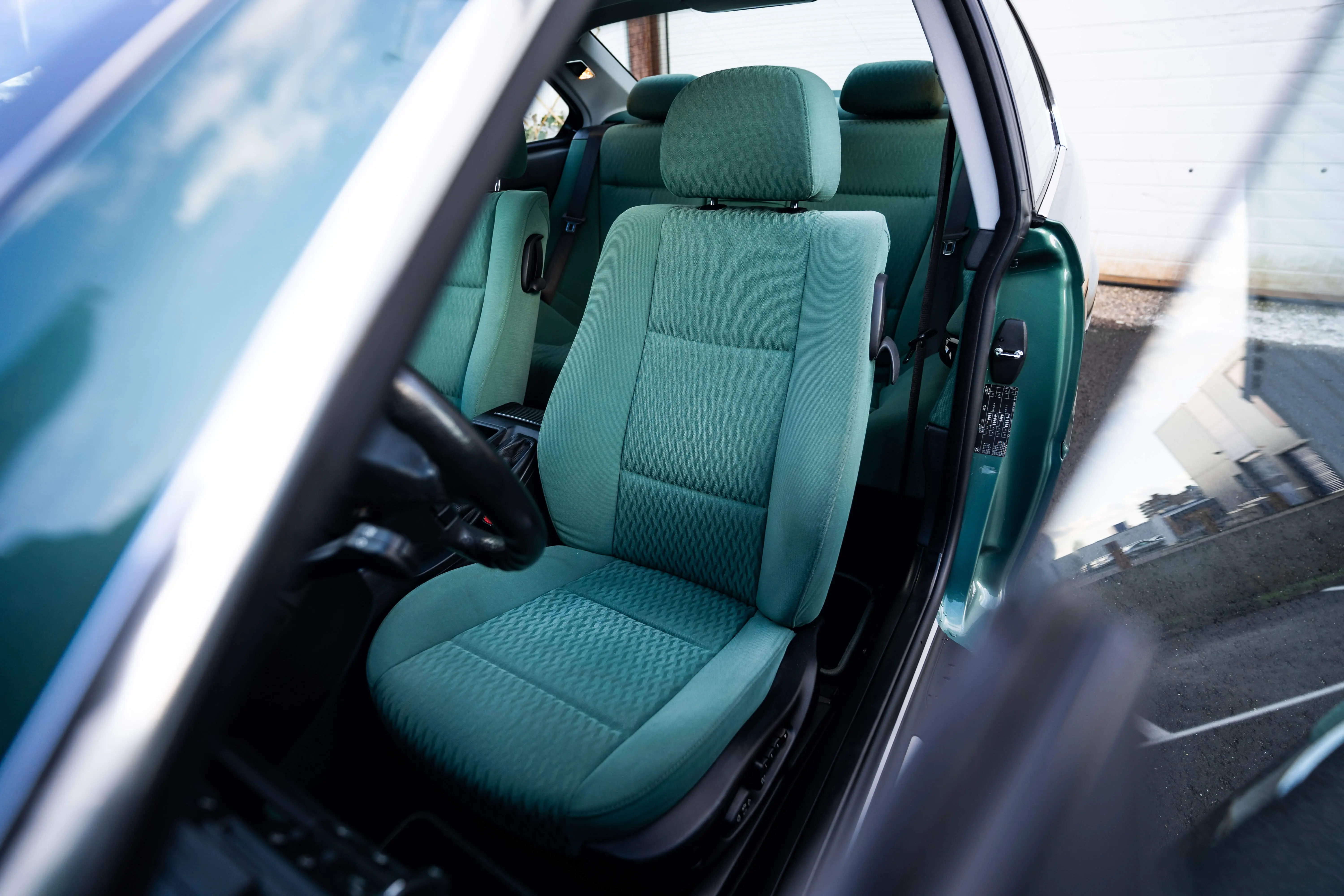 Een geweldige BMW E46 coupe in de kleur Meer-Grün met een 'Raute Flock Mintgruen' interieur. Nagenoeg op het niveau van BMW Individual. Dit alles is na te lezen in de uitgebreide onderhoudshistorie die aanwezig, zelfs de aankoopfactuur zit erbij. Hierdoor is ons bekend dat zij een Opel Corsa inruilde voor een nieuwe BMW, ik denk dat iedereen die keuze zou maken wanneer de mogelijkheid zich voordoet. Gelukkig heeft zij het niet alleen bij haar goede kleuren specificatie gelaten en koos zij ook voor een 6 cilinder. Een motor met een inhoud van 2494 cc die Eva en haar passagier in 8 seconden naar de 100 brengt, meer heb je ook niet nodig.