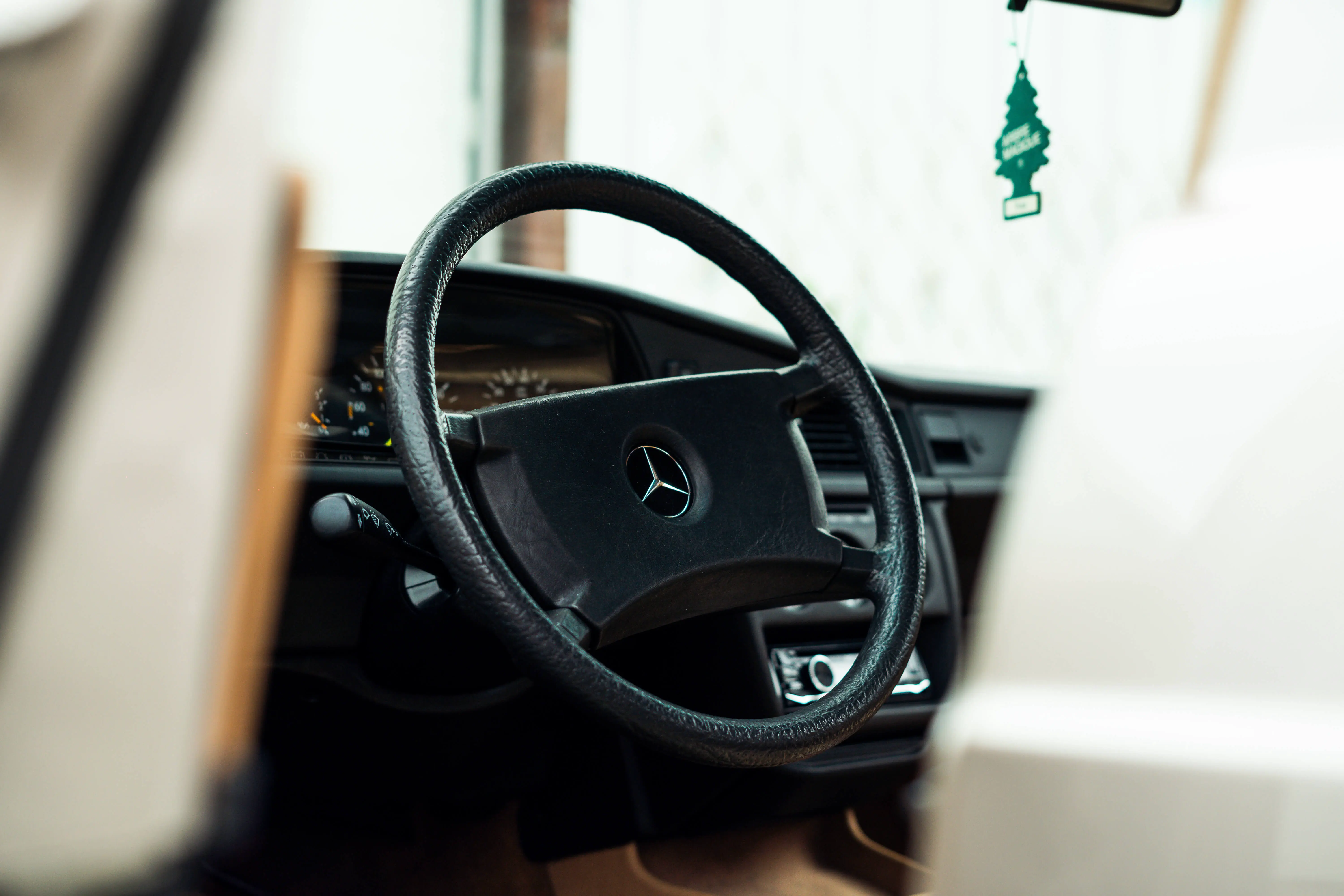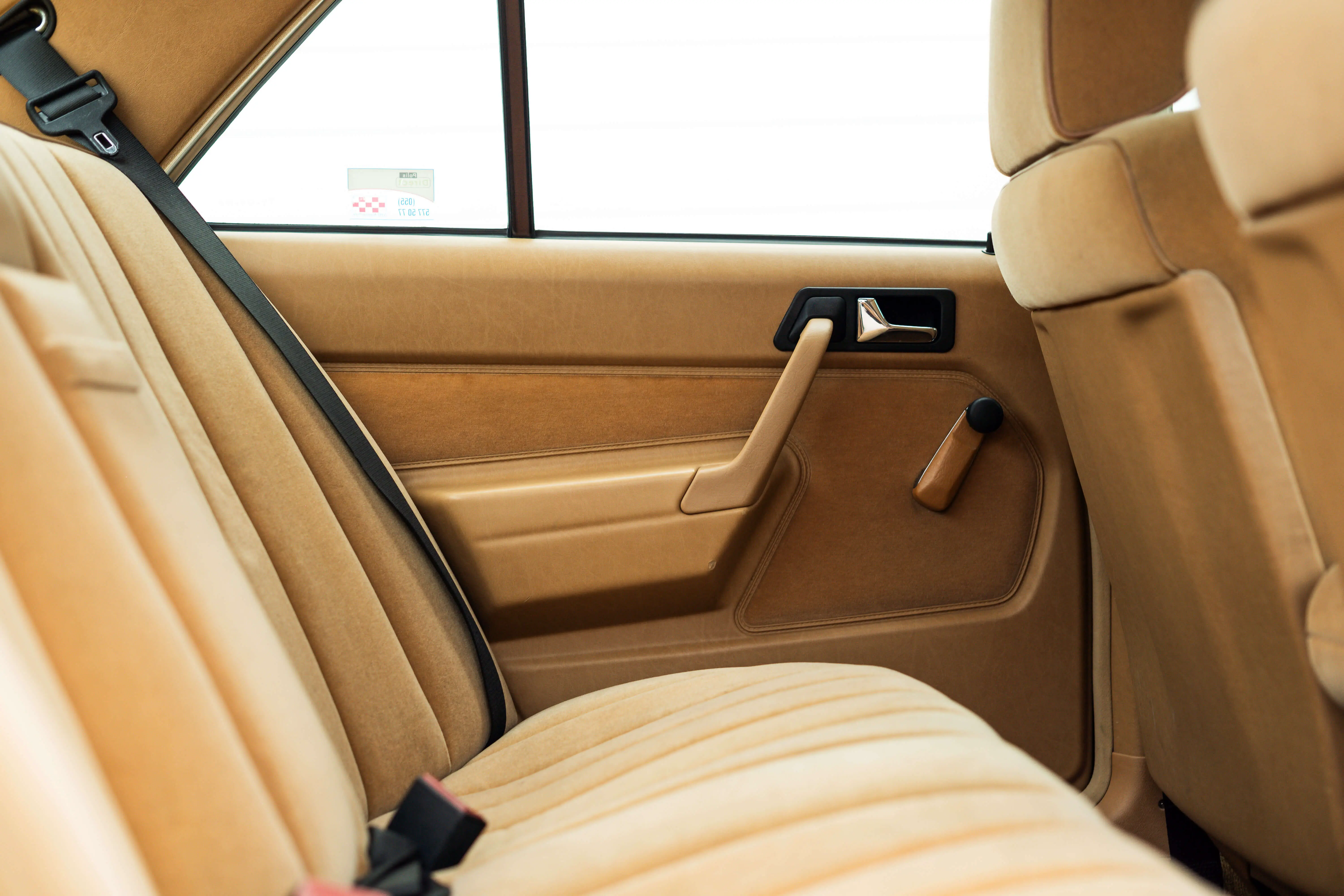 Het interieur is waar het feest echt begint, het beige Pullman interieur is nog erg fraai. Vrijwel geen schades te bekennen en het stuur ligt nog heel fris in de hand. Al met al een mooie plek om Europa in te verkennen. Want de lange baan, daar zijn ze voor gemaakt. Vrijheid is een volgetankte Mercedes.