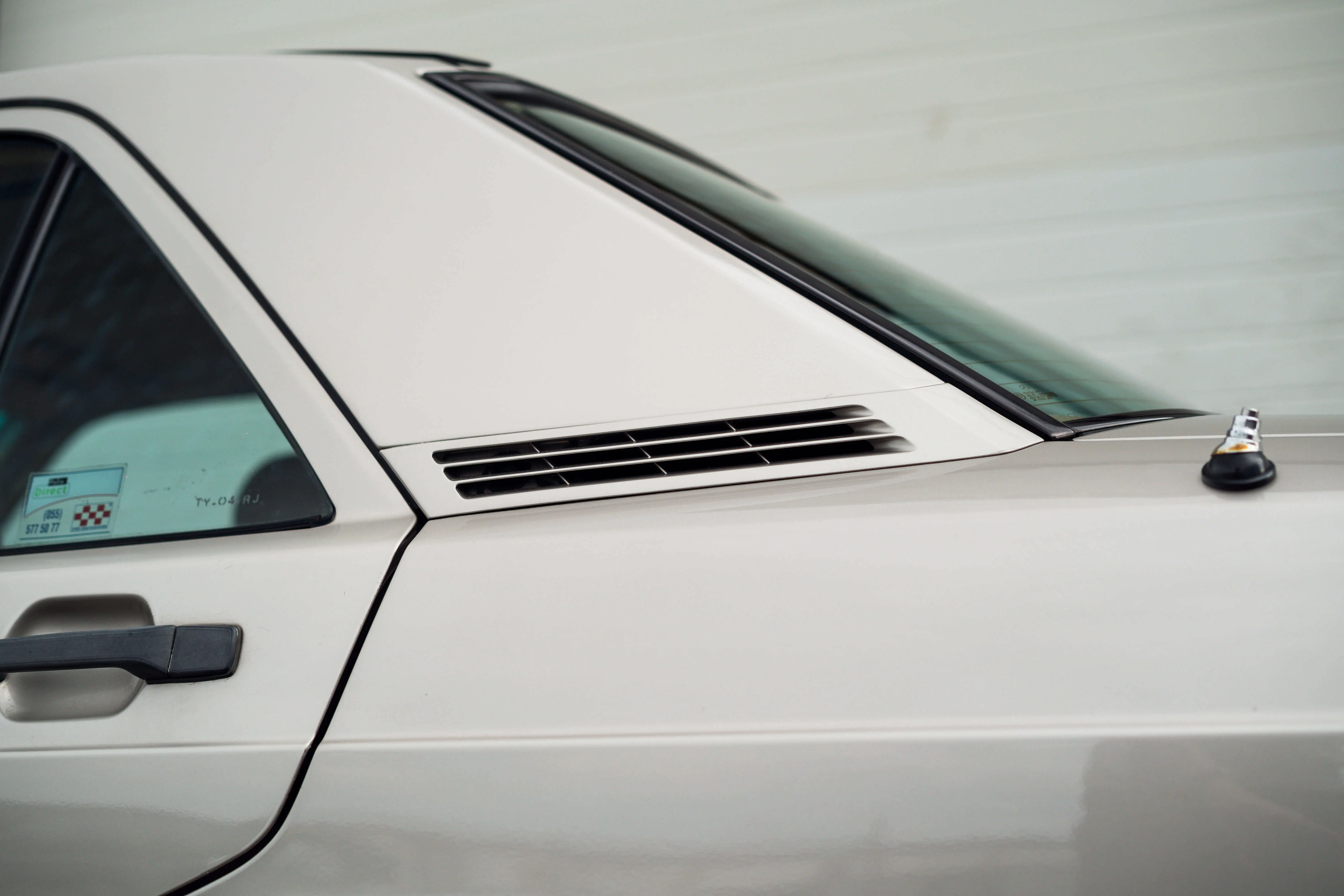 De auto staat erg netjes in de lak, rondom zijn natuurlijk wel lakschades te bekennen, maar geen schokkende dingen. Rauch Silber staat mooi in combinatie met de modelpflege Bruno Sacco kappen. De koets is zeer strak te noemen! Absoluut geen roest aan de auto te bekennen, alle kriksteunen zijn nog origineel en netjes.