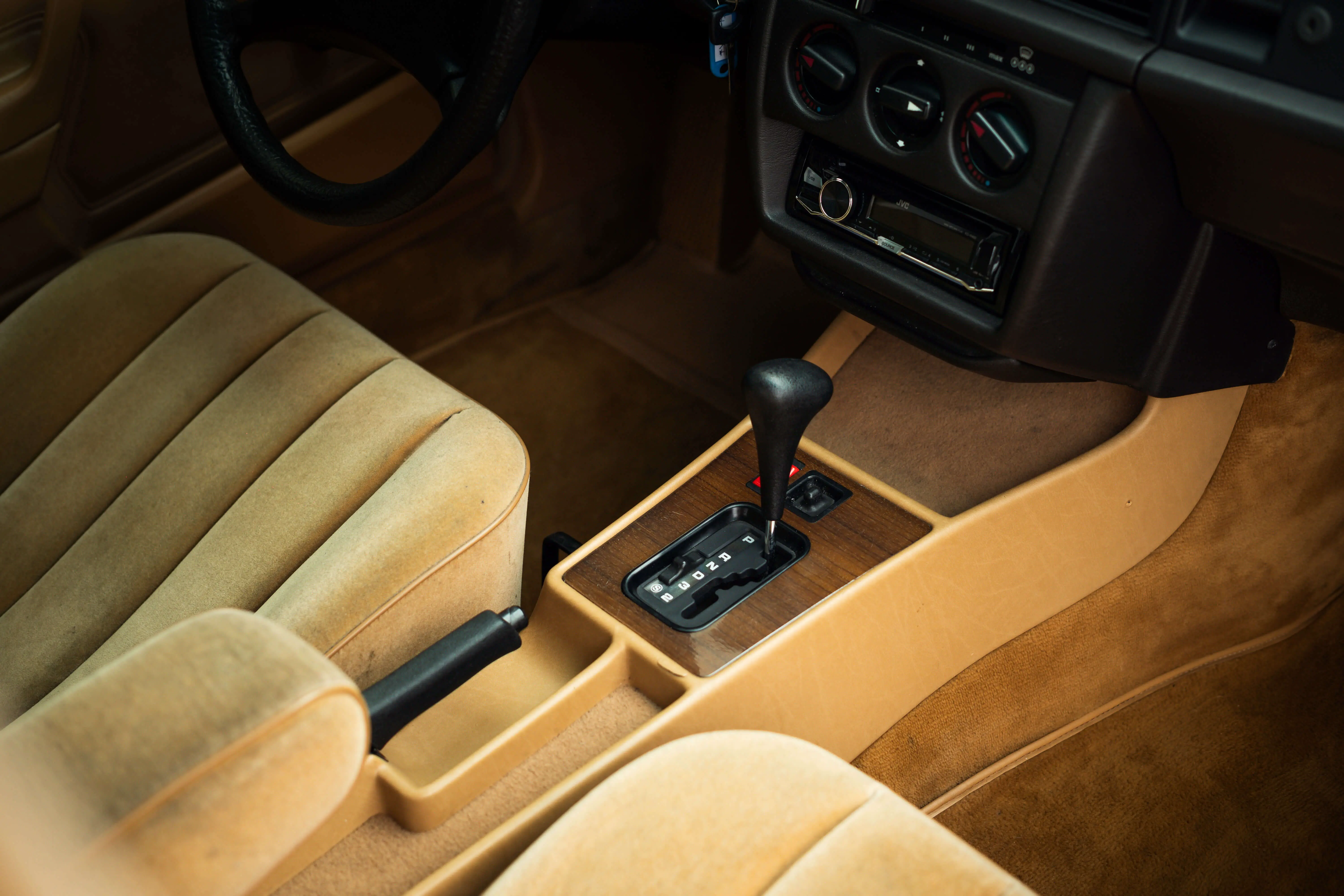 The car has a very neat paint job, there are of course some paint damages all around, but nothing shocking. Rauch Silber looks great in combination with the model sporting the Bruno Sacco body panels. The carriage is very tight! Absolutely no rust on the car, all jack stands are still original and neat.