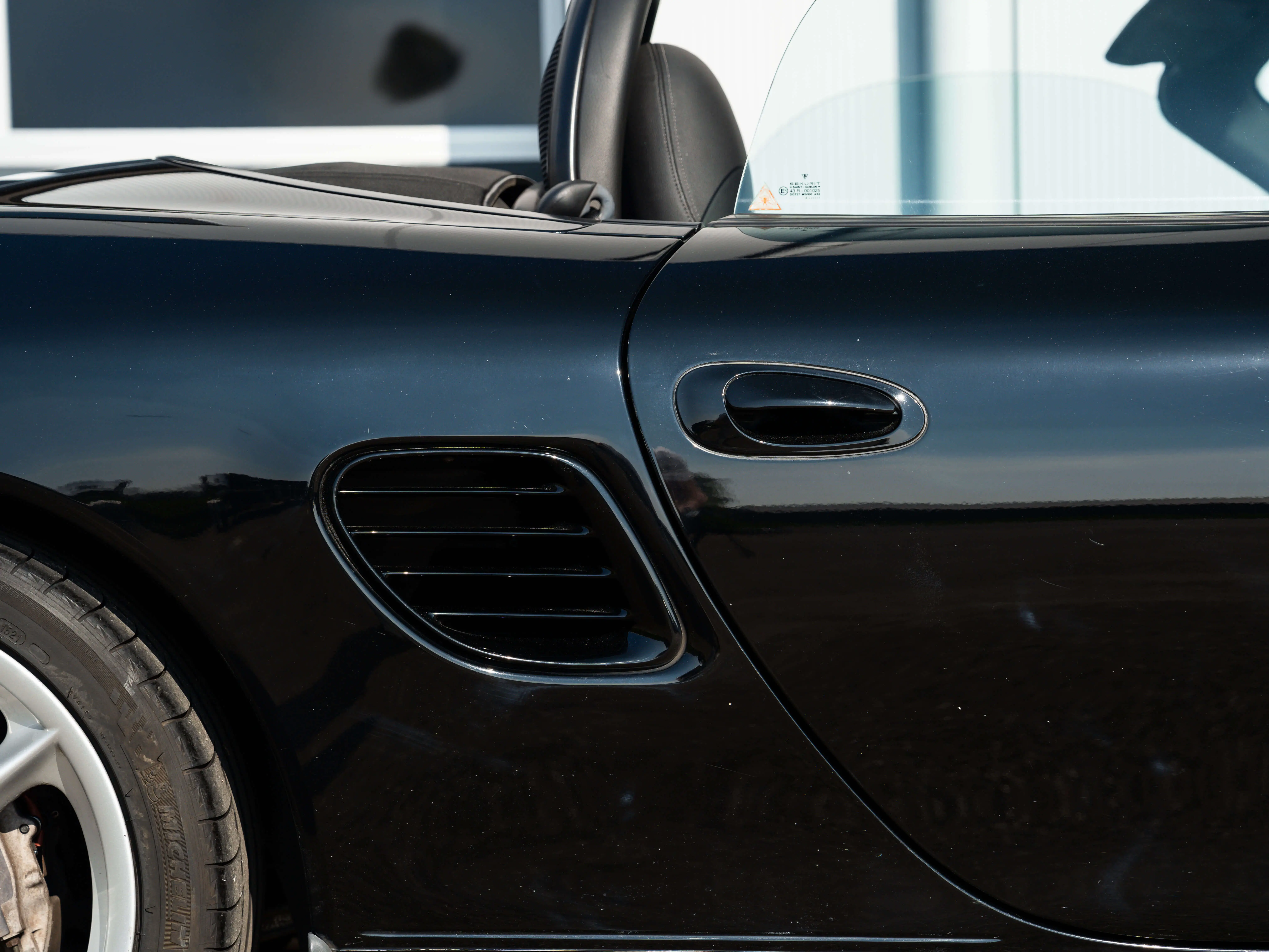 De boxster zit voor het grootste gedeelte nog in zijn fabriekslak, buiten het rechter voorscherm is er niks aan gespoten. Dat is dan ook wel te zien aan de motorkap en voorbumper, deze hebben een aardige hoeveelheid steenslag verzamelt door de jaren heen. Een eerlijk verhaal van al zijn snelwegervaring. Mocht dit een doorn in het oog zijn kunnen wij uiteraard hier een oplossing voor vinden voor aflevering.