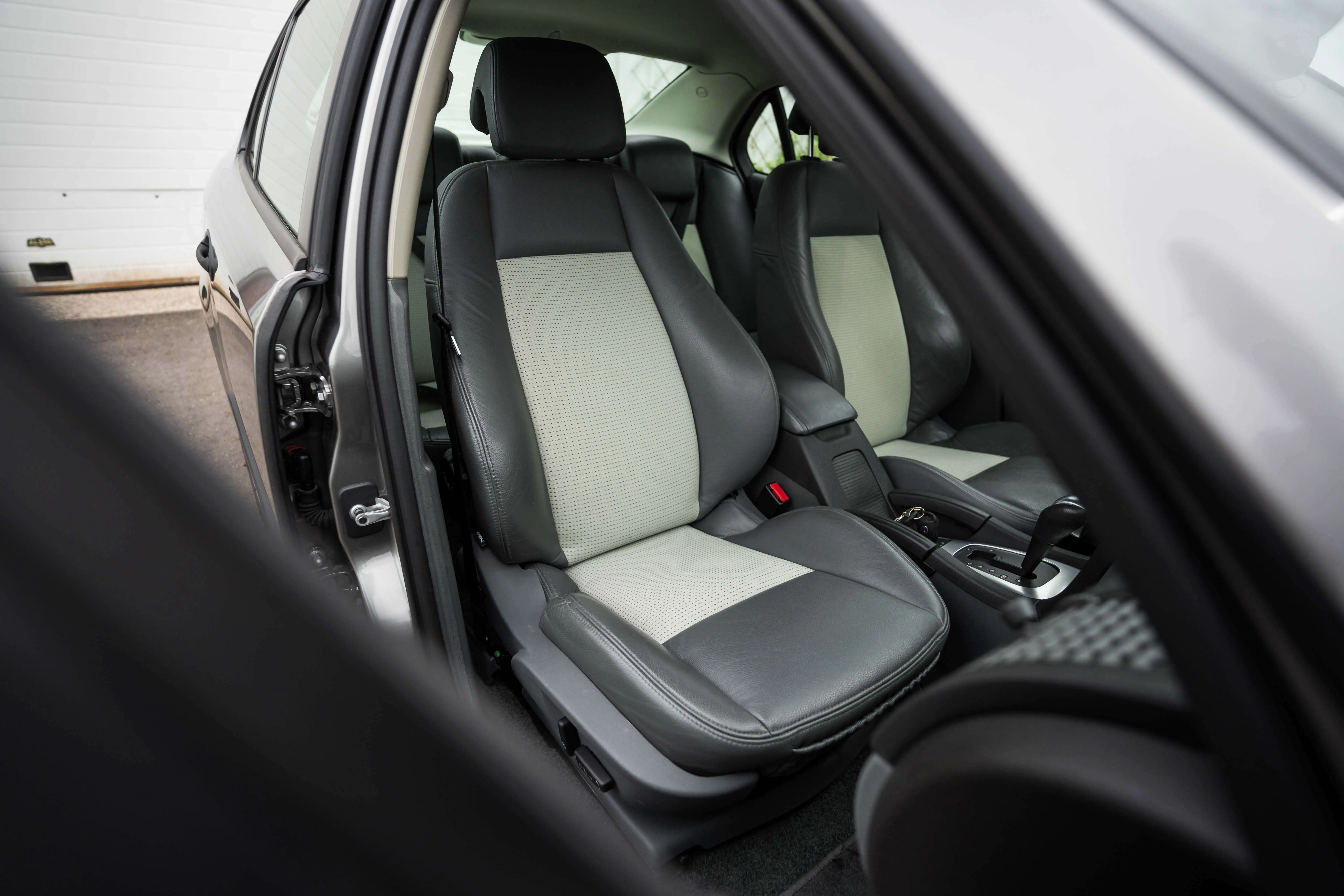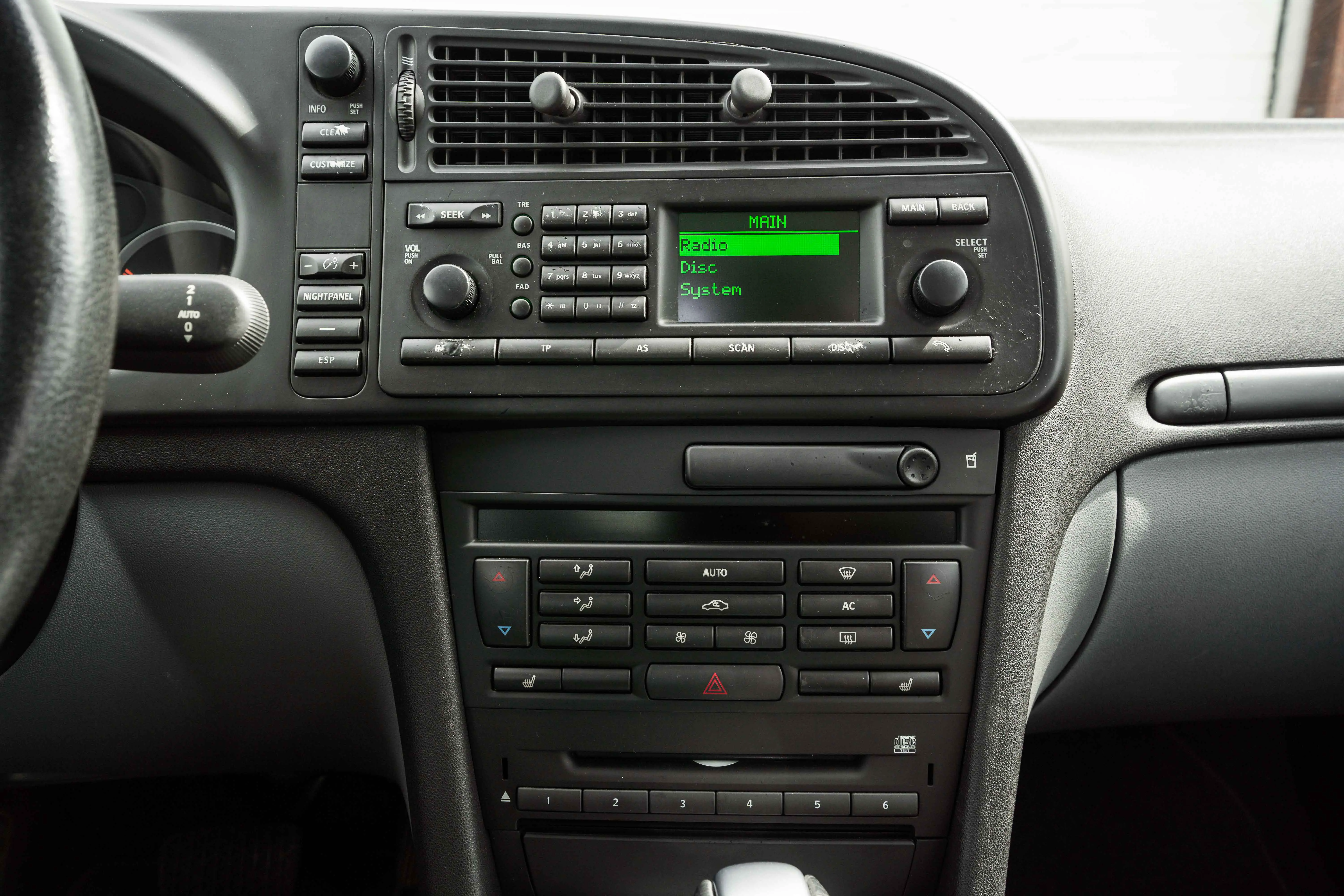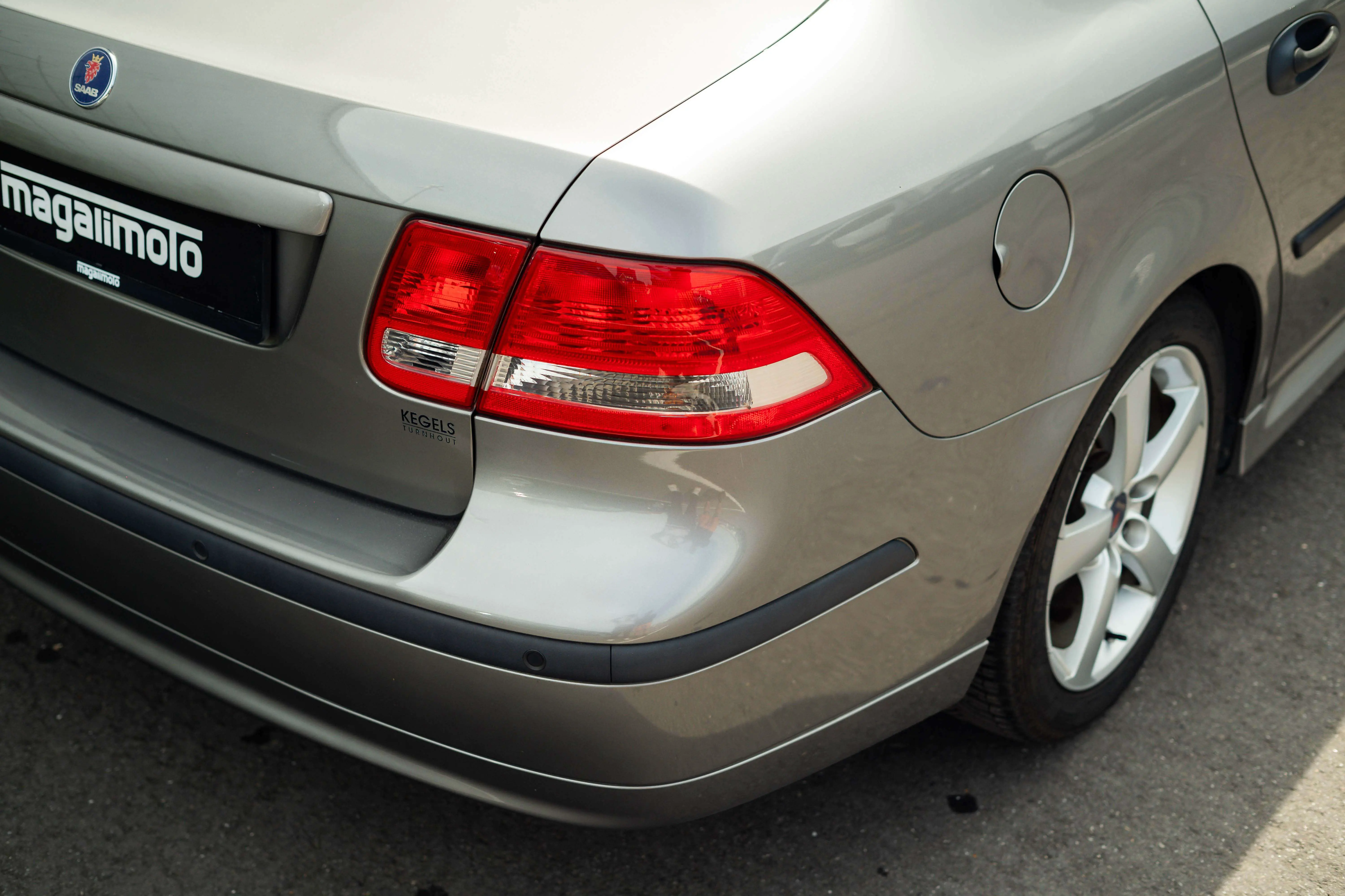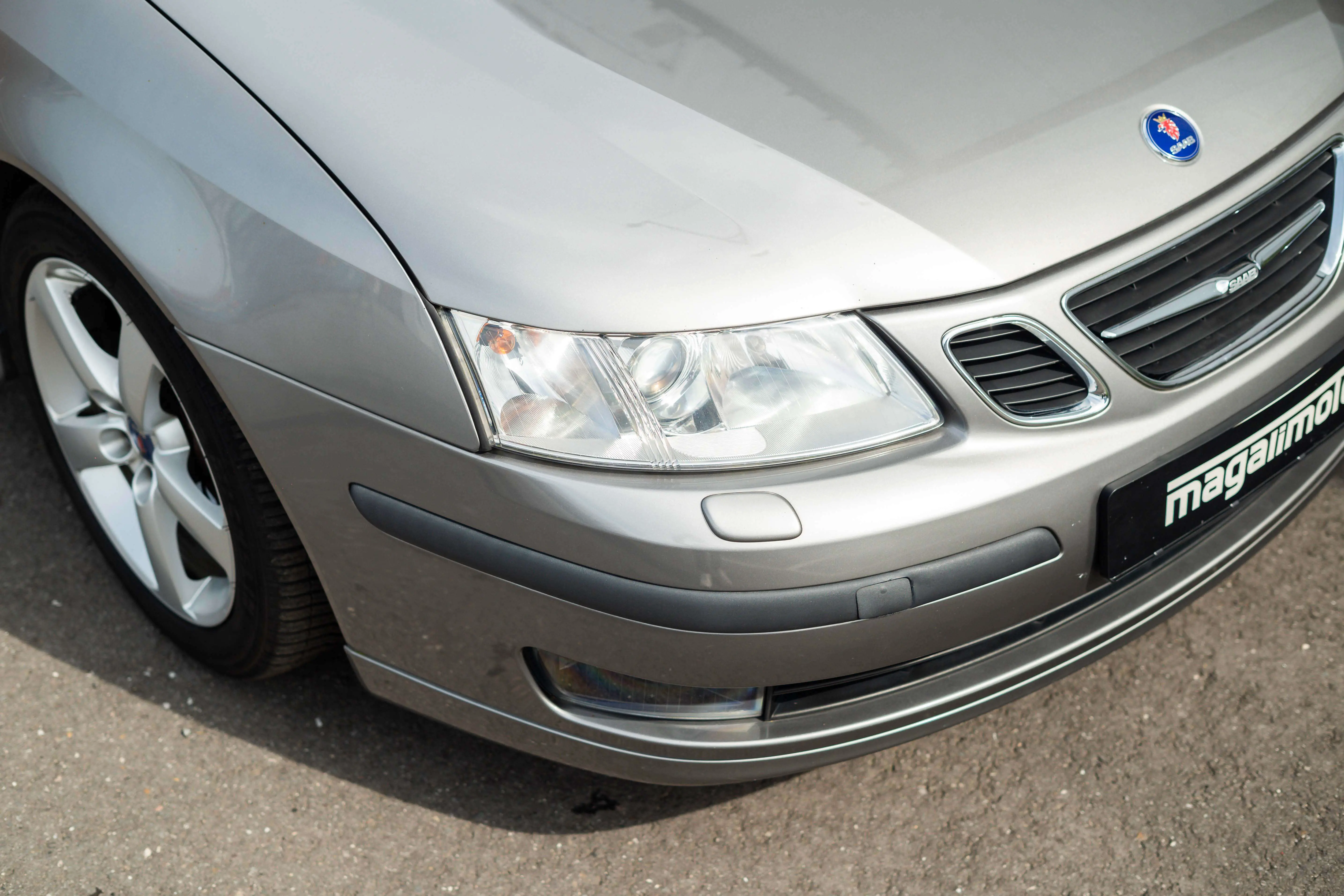 On the outside, the Saab is completely in its original paint. The Steel Gray metallic paint, in combination with the optional 17-inch aluminum rims, gives a very chic yet sporty appearance. We were unable to discover any dents. A really tight carriage. No parking damage visible on the bumpers, both front and rear. Just like new on the outside. Light scuff on the bottom of the bumper from a slightly too high sill. But you can't blame the car for that.