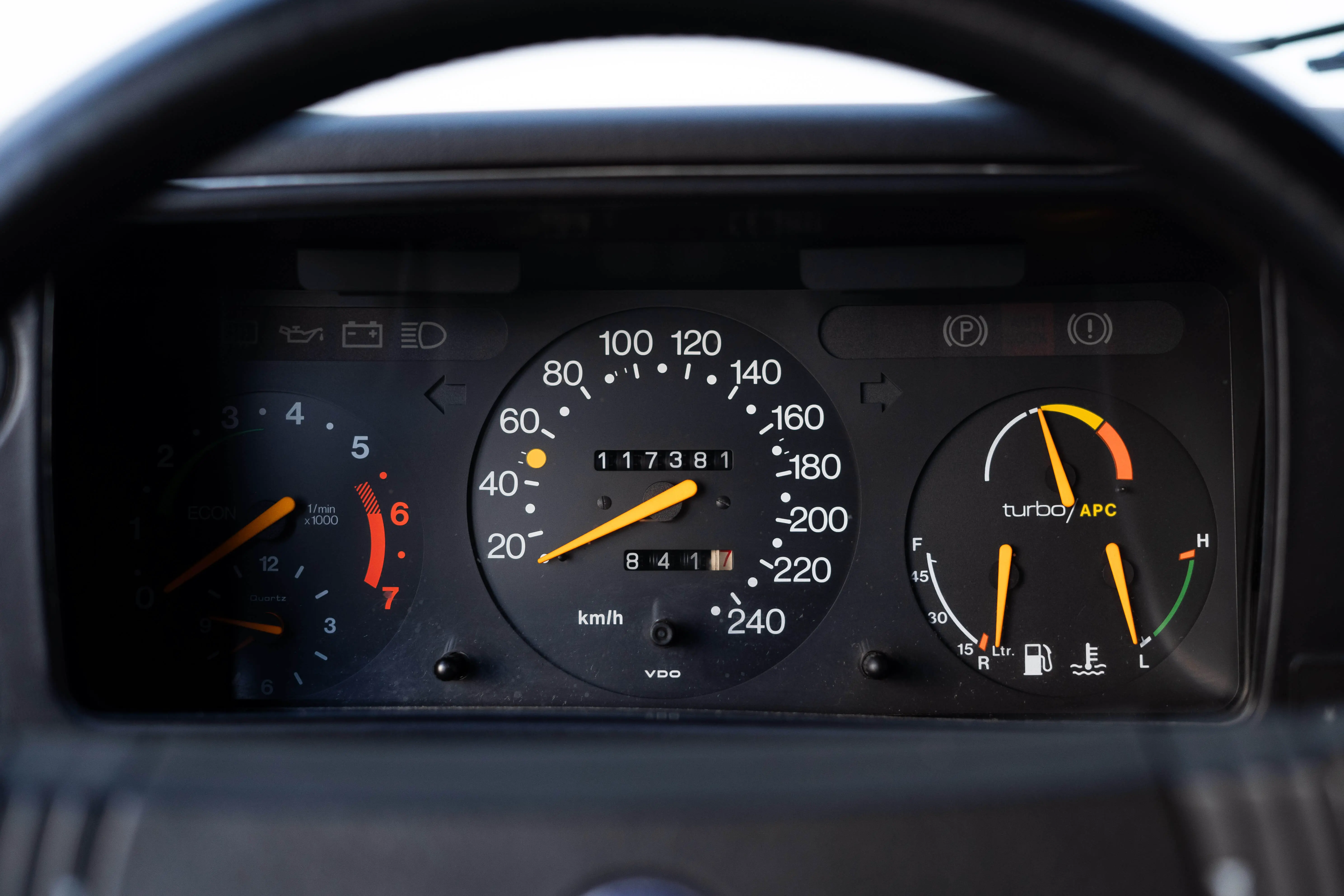 Het interieur is nog in erg nette staat, desondanks heeft de Spaanse zon wat kleine scheurtjes in het dashboard weten te branden.