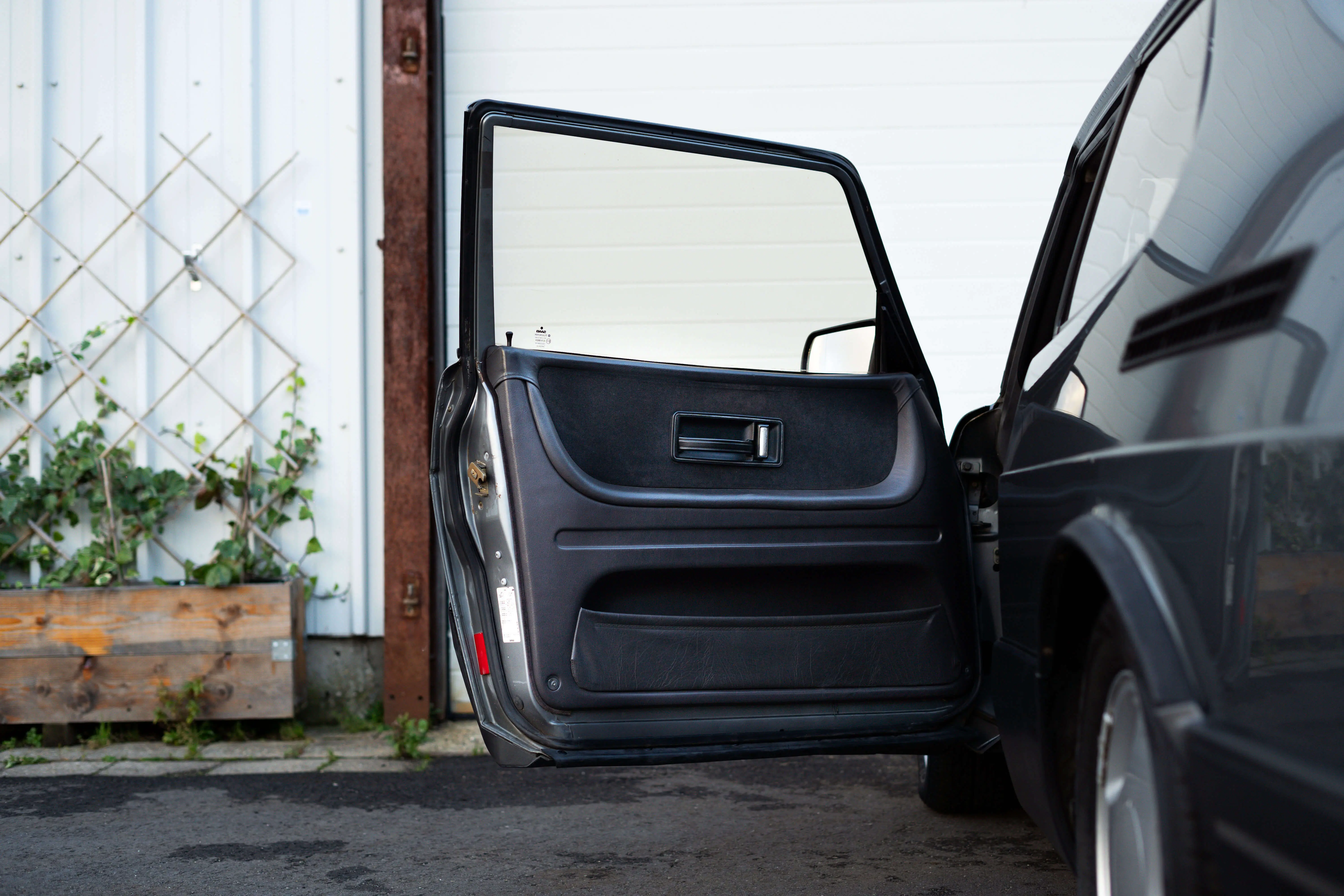 Het dashboard kastje vertoont weinig bobbelvorming en sluit netjes. De stoelen zitten goed en ferm, niks op aan te merken daar. Het hemeltje hangt niet, is wel al ooit opnieuw bekleed geweest. Valt uiteraard te verwachten gezien zijn afkomst.