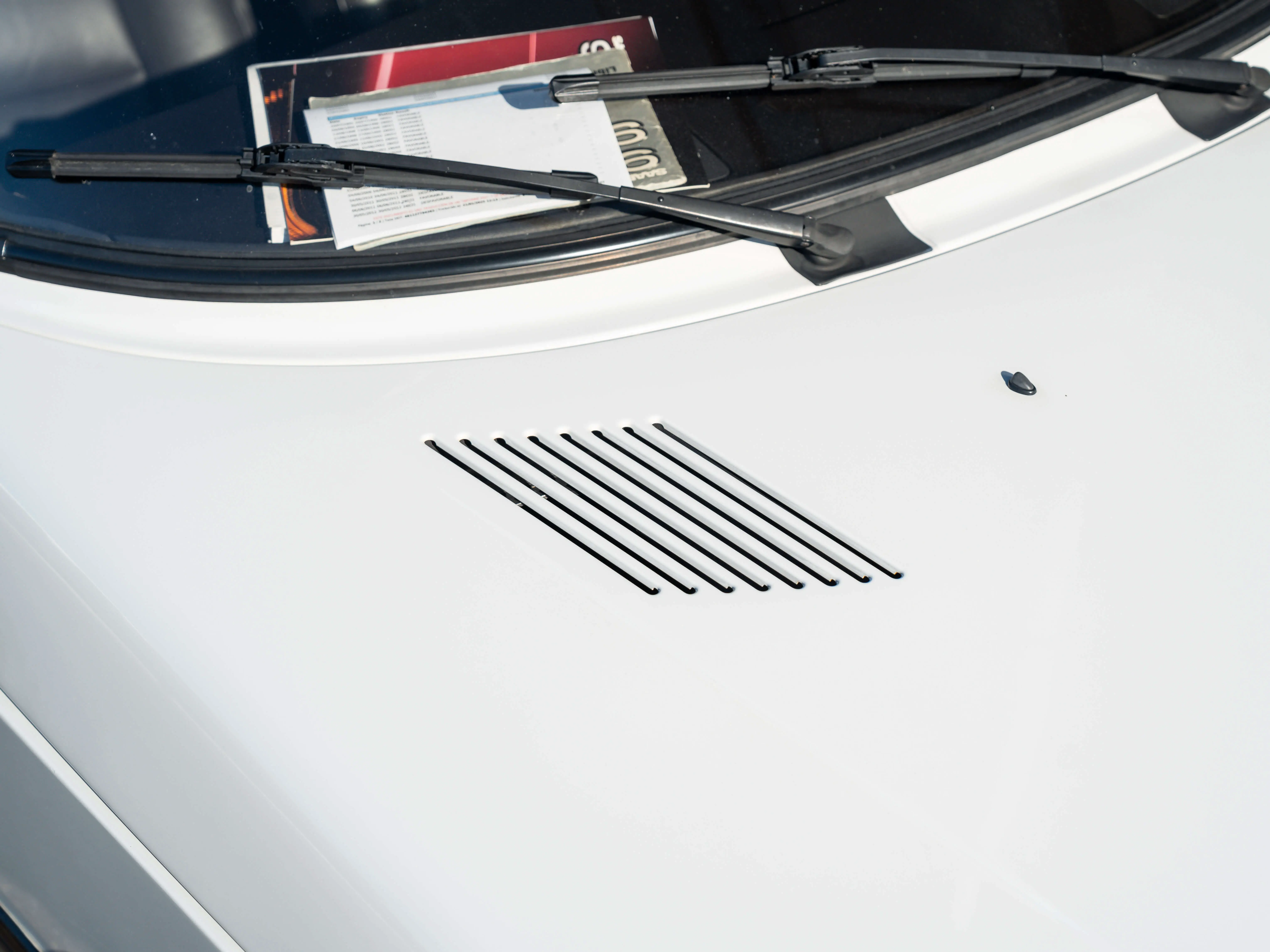 The paintwork still looks neat. Two small scratches on the hood but we wouldn't do anything about it. The front and rear bumpers have some markings on the corners, but in our opinion it would be a shame to have them resprayed since they are still in the original shade. From experience we can say that it is very difficult to imitate this, so we can live with some patina.